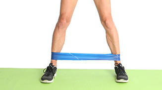 Para fotalecer banda iliotibial, coloca tus tobillos entre una liga grande y separa una de las piernas hasta