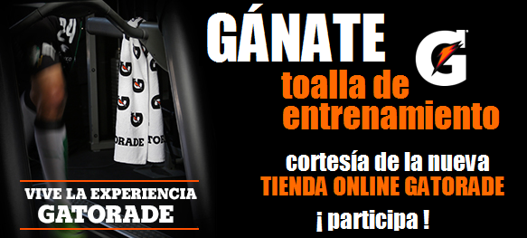 Llévate uno de las 10 toallas Gatorade tipo bufanda que podrás usar para secarte en tus entrenamientos y competencias, hecha de algodón para hacerla cómoda de usar y súper absorbente para retirar el exceso de sudor o agua. Además su tamaño es ideal para colocarla alrededor del cuello como los hacen los jugadores de la NFL o NBA, mide 1.2 m x 28 cm y son cortesía de la nueva tienda en línea Gatorade.