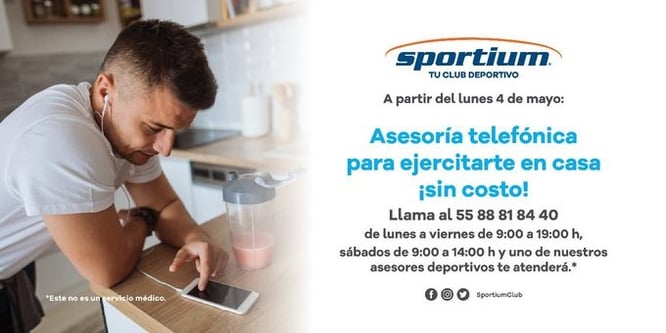 Si durante estas semanas e confinamiento quieren activarse físicamente y seguir un plan de entrenamiento, llamen al 55 8881 8440 con Sportium Club y sus asesores les ayudarán (sin costo) a armar rutinas en función a sus necesidades y accesorios disponibles.