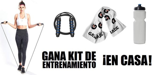 Tenemos de regalo un kit con cuerda para saltar, toalla de gimnasio y ánfora para que entrenes ¡en casa!