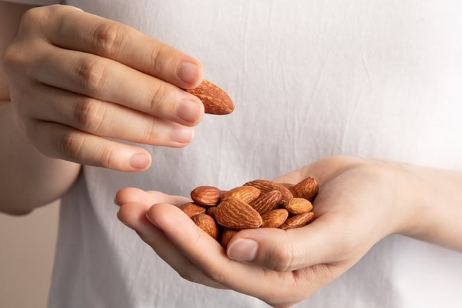Para lograr esto, en lugar de comer refrigerios como papas, galletas o pan consuman un puñado de almendras todos los días, que pueden ser aproximadamente 23 almendras. Todos estos beneficios de las almendras se deben a su valor nutricional, pues contienen fibra, proteína y 15 nutrientes esenciales, entre los que destacan el magnesio, el potasio, ácidos grados (grasas saludables) y vitaminas como la E.
